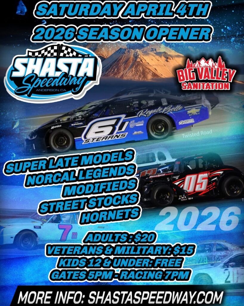 Fans can expect a Beautiful spring evening in Shasta County—perfect for kicking off the racing season.